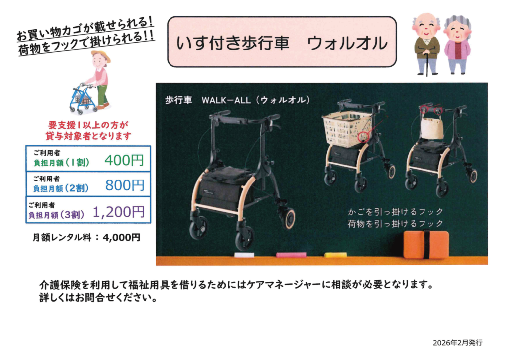 2月「お買い物に便利な歩行器のご案内」です。